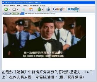 在電影《賭神》中飾演反派高義的演員龍方,14日上午在西安長安區一家醫院過世,享年54歲。深圳嘉年華明星經紀公司總經理周行表示,龍方一年前就出現不斷咳嗽的症狀,今年5月在香港檢查出為肺癌末期,從5月治療至今,最終還是宣告不治。