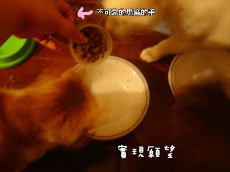 然後他會趁我在看到他的時候~告訴我他要吃飯飯了