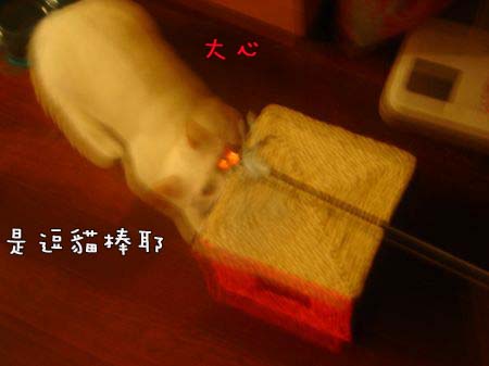 而喔噴將則是早上起床想要玩逗貓棒,還是吃飽想玩逗貓棒~就會跑上去上面~看著放逗貓棒的櫃子