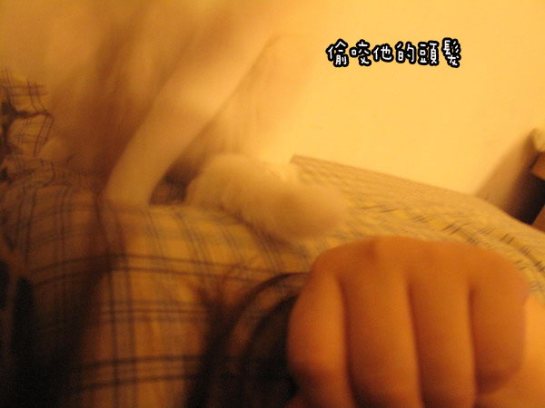 喔噴將:呵呵~反正馬麻睡著又沒有感覺~他不會發現我咬他頭髮的啦~而且我打他他都沒反應耶!!!