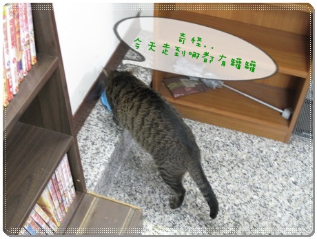 話說.....泡芙覺得趴在書櫃上吃罐罐實在太辛苦了!