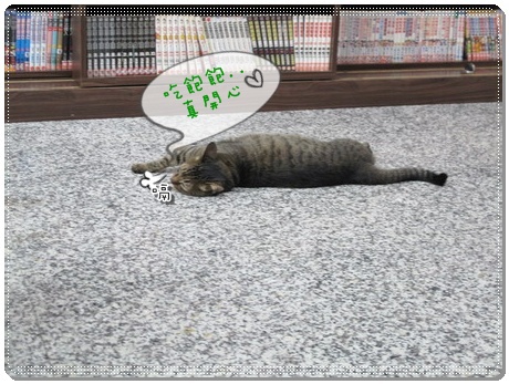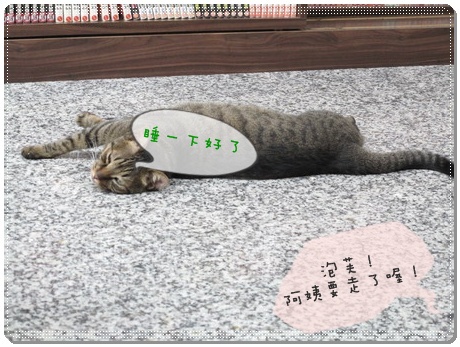 過一下就看到泡芙整隻貓大剌剌的躺在地板上....