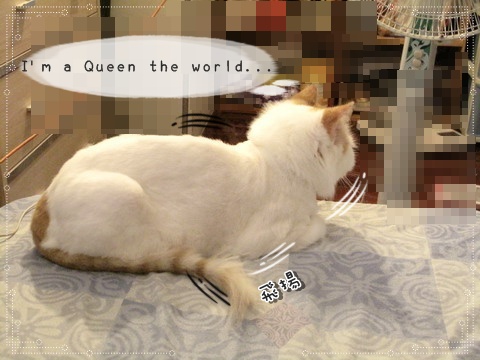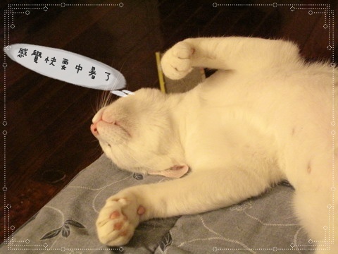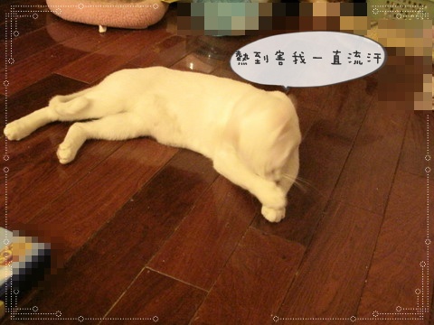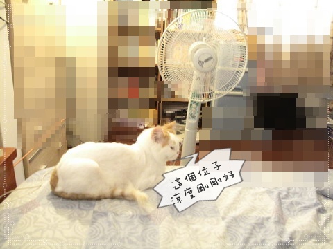 小公主:ㄟㄟ~電費這麼兇!吹一下有涼就好了阿!!不然你可以學寶咖咖!窩在電風頭就不怕熱了