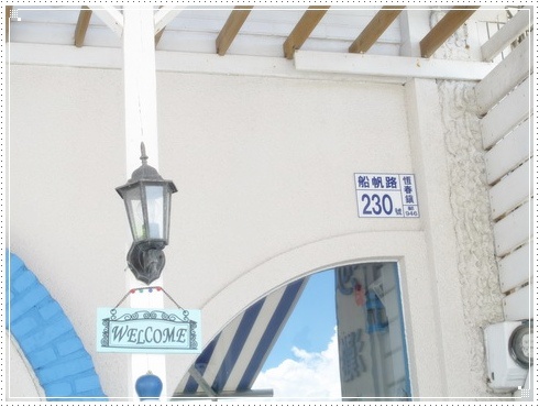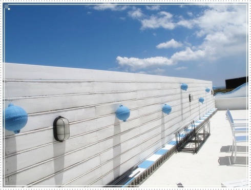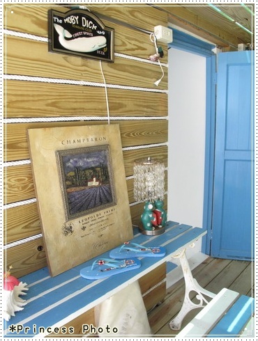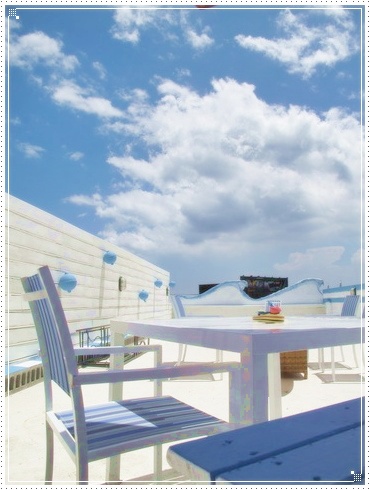 走到樓上映入眼簾的是一個藍白對比很重的桌子~