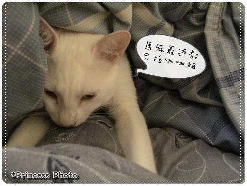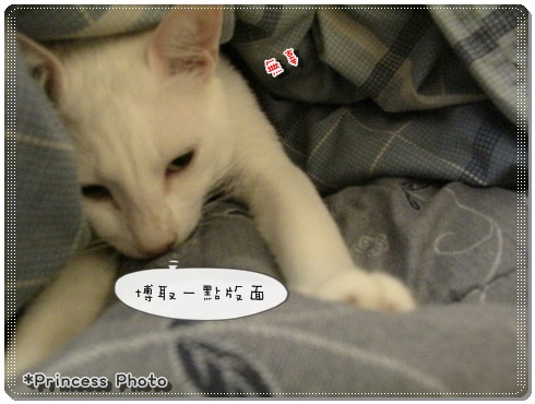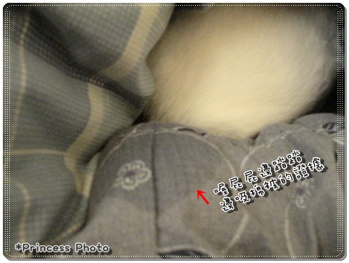 然後喔屁屁看我一直玩寶咖咖~心理極度不平衡~於是自己很可憐的跑到我的棉被裡面~裝無辜...