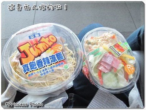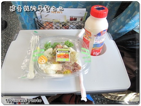 就有一位空中小姐看我太可愛了....拿了一盒沙拉跟益菌多給我....我不收也不好意思~