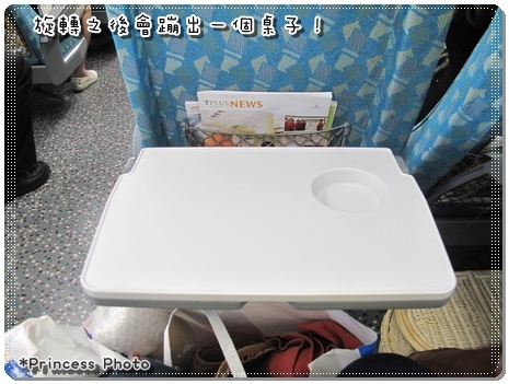 他的位子放行李之後還很寬~不擠~就算前面的人放下椅子~也不會卡到拎盃的咖....
