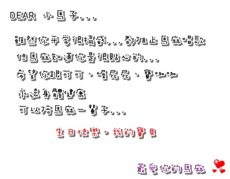 小公主:馬麻要幫小馬子過生日阿!你看~有很多禮物耶.....
