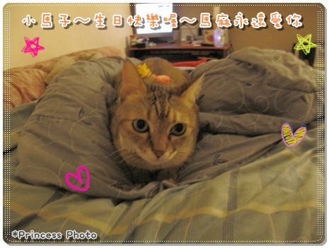 最後我放棄了!因為小馬子很怕蠟燭.....他不像可可跟喔屁屁有憨膽.....