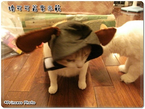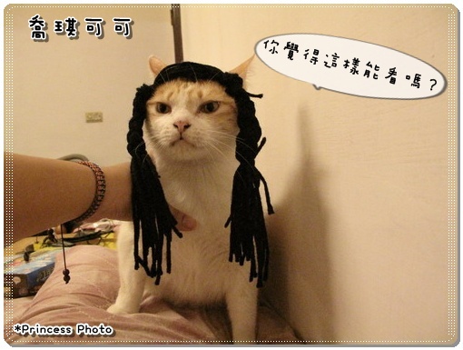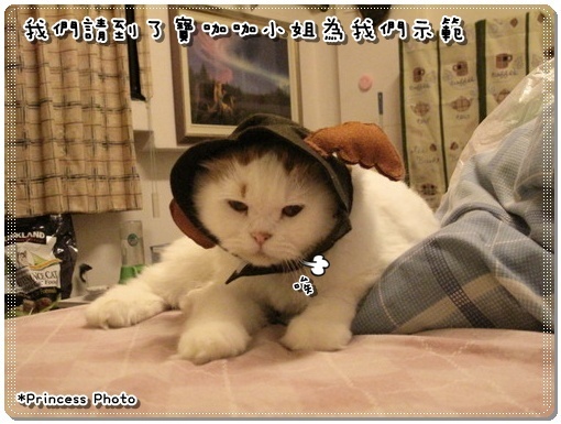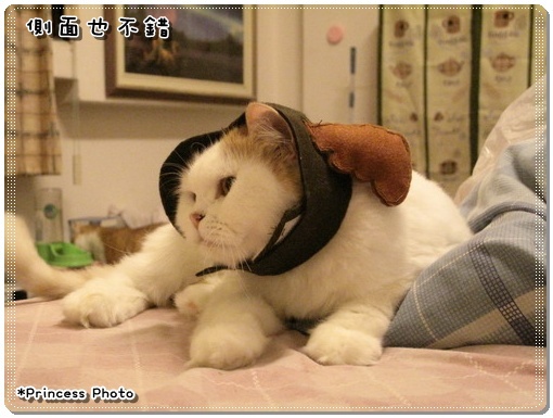 可能我拍太久了~所以咖咖帶在頭上亂甩一下就掉了.....