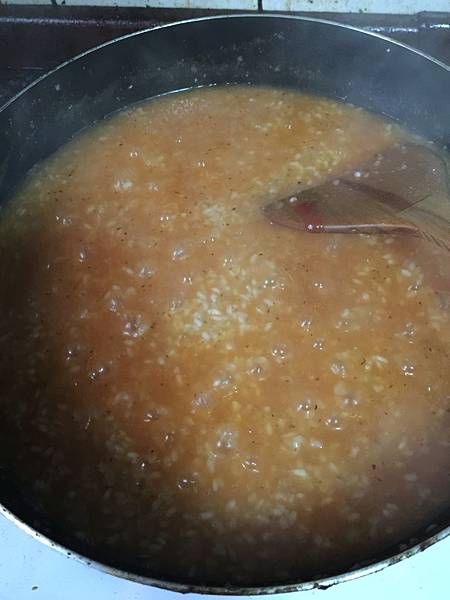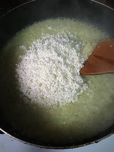 既然是燉飯,火不要開太大,否則會變鍋巴的,然後要不停攪拌喔