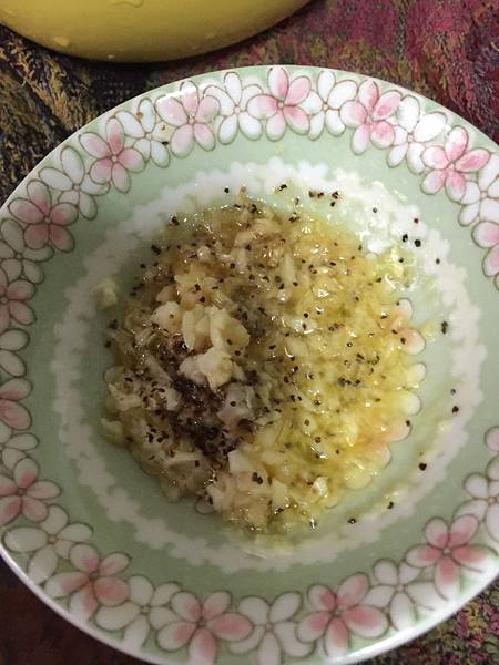 蒜末+奶油+黑胡椒粒先用微波爐融化